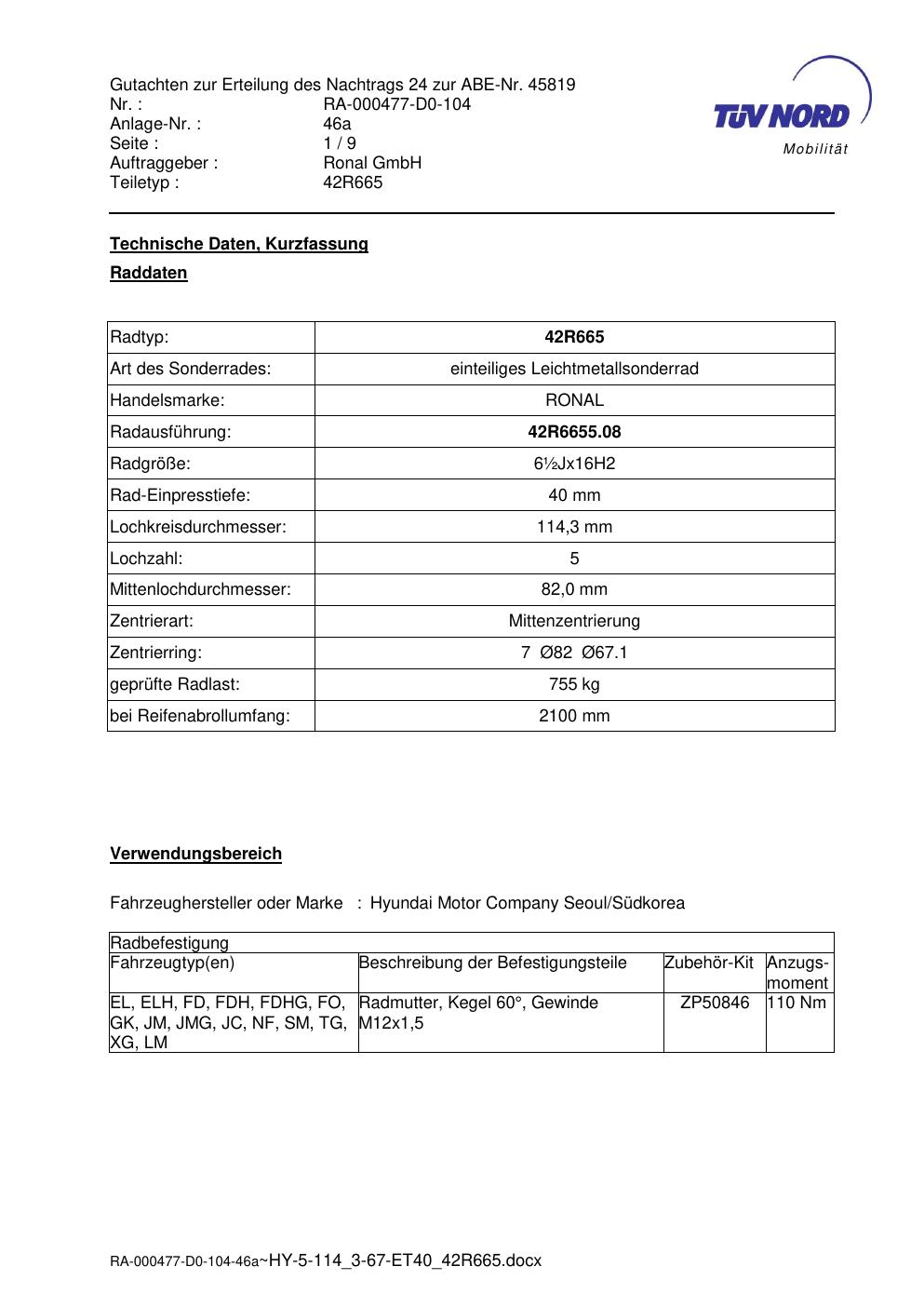 • Stimmt die KBA-Nummer auf der Felge mit diesem Dokument überein?