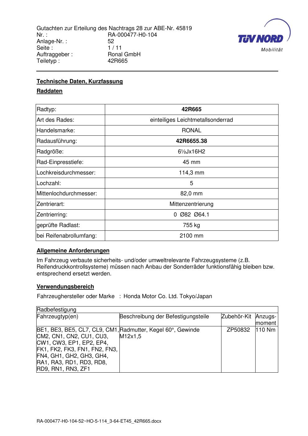 • Stimmt die KBA-Nummer auf der Felge mit diesem Dokument überein?