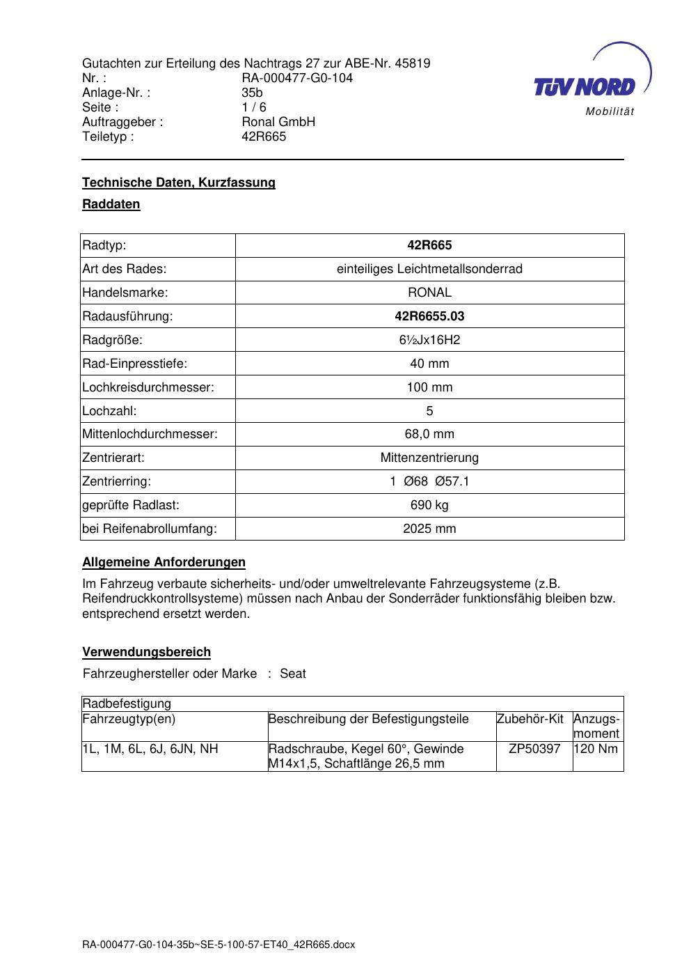 • Stimmt die KBA-Nummer auf der Felge mit diesem Dokument überein?
