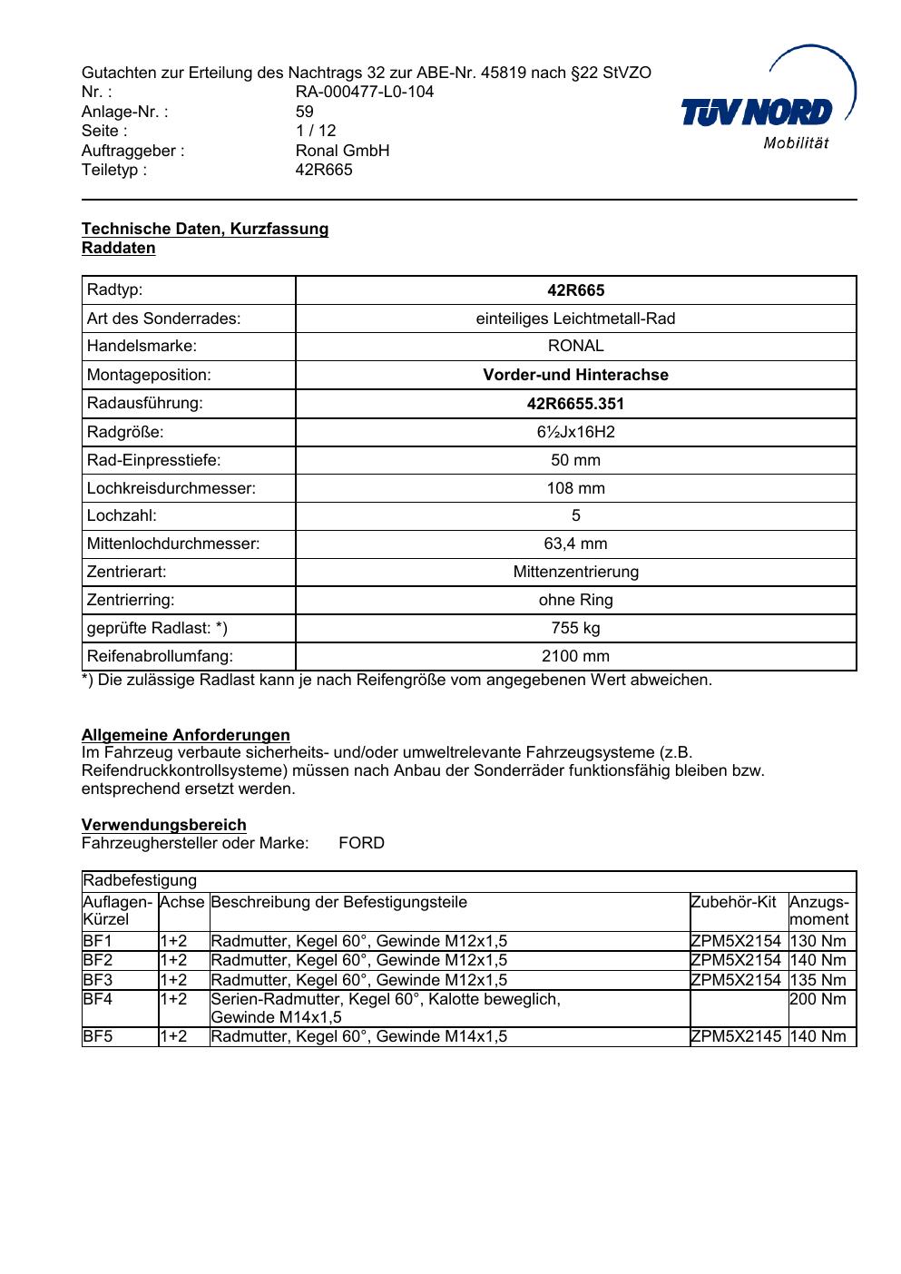 • Stimmt die KBA-Nummer auf der Felge mit diesem Dokument überein?