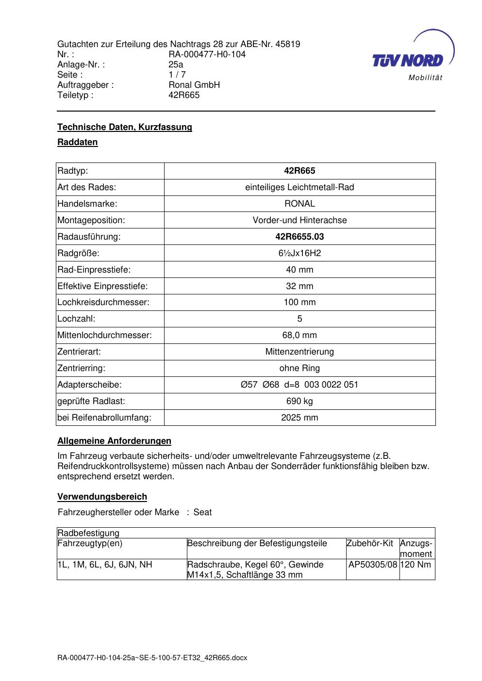 • Stimmt die KBA-Nummer auf der Felge mit diesem Dokument überein?