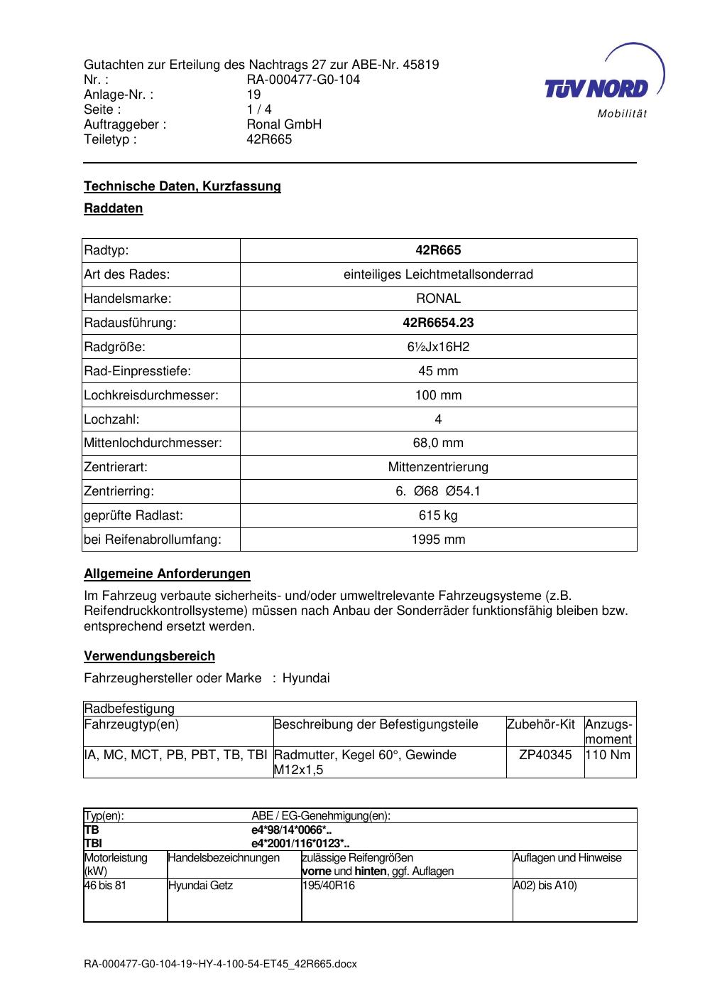 • Stimmt die KBA-Nummer auf der Felge mit diesem Dokument überein?