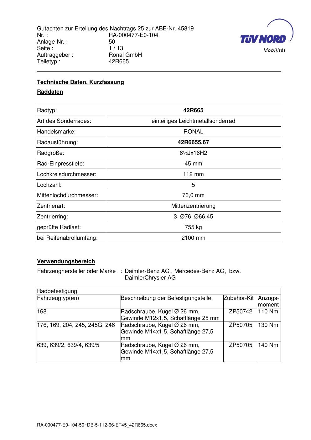 Dieses abe gehört zur Felge Ronal 42R665 in ET0 mit KBA 45819. Die Seite ist dafür gedacht, dass du schnell prüfen kannst, ob KBA, Design und Größe zu deiner Felge passen und danach direkt das richtige PDF lädst.