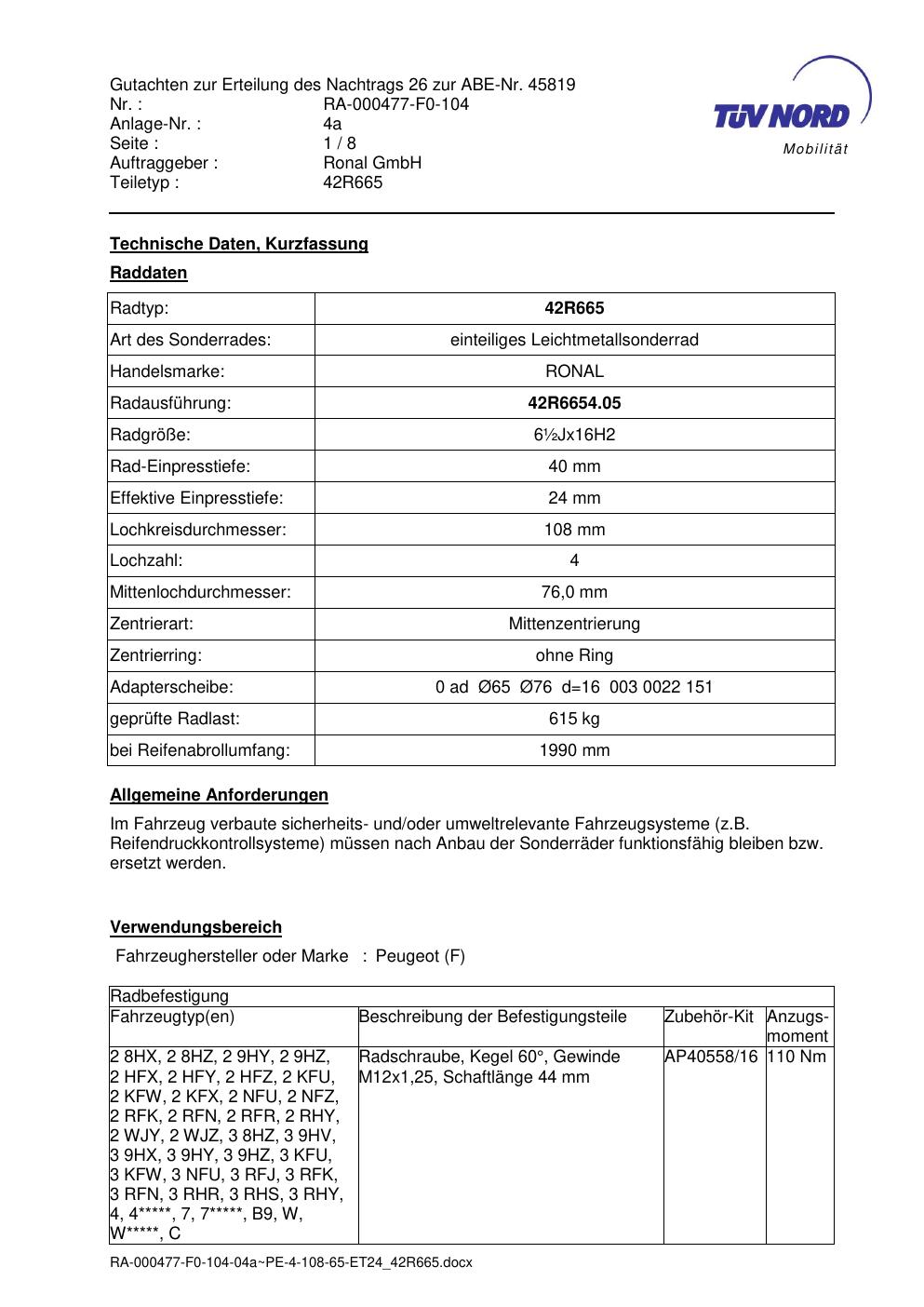 • Stimmt die KBA-Nummer auf der Felge mit diesem Dokument überein?