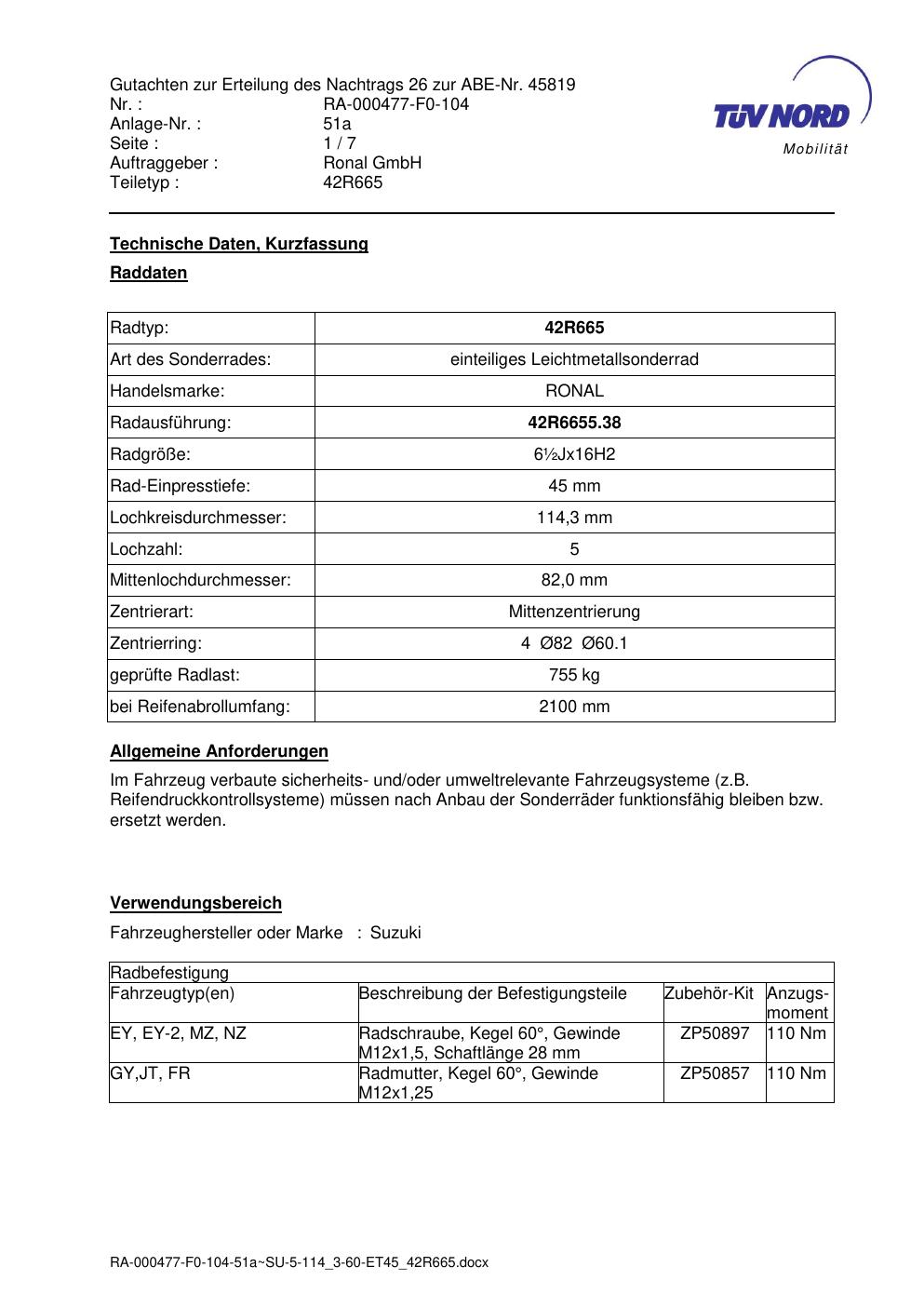 • Stimmt die KBA-Nummer auf der Felge mit diesem Dokument überein?