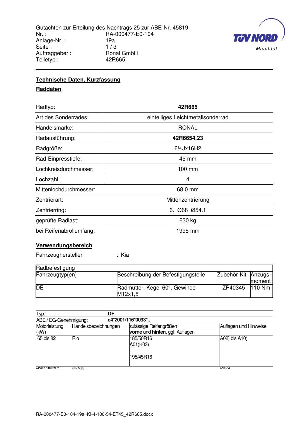 • Stimmt die KBA-Nummer auf der Felge mit diesem Dokument überein?
