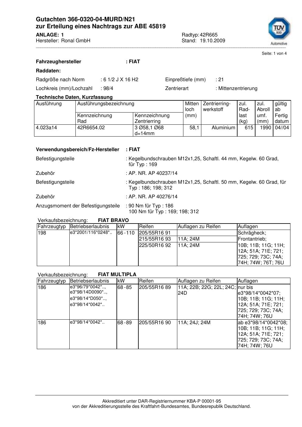 • Stimmt die KBA-Nummer auf der Felge mit diesem Dokument überein?