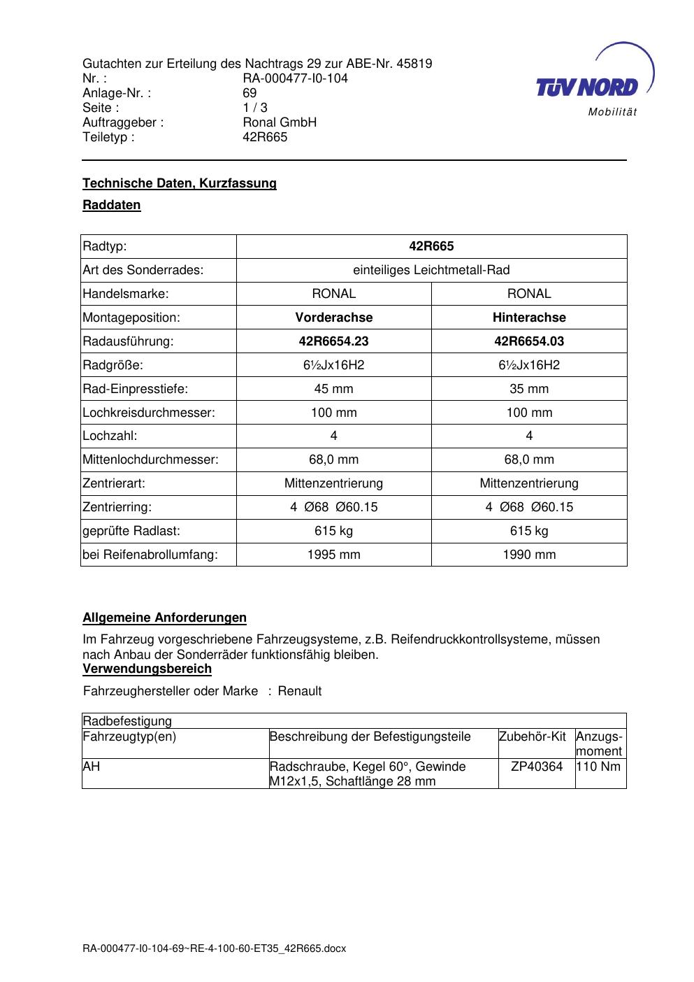 - Stimmt die KBA-Nummer auf der Felge mit diesem Dokument überein?