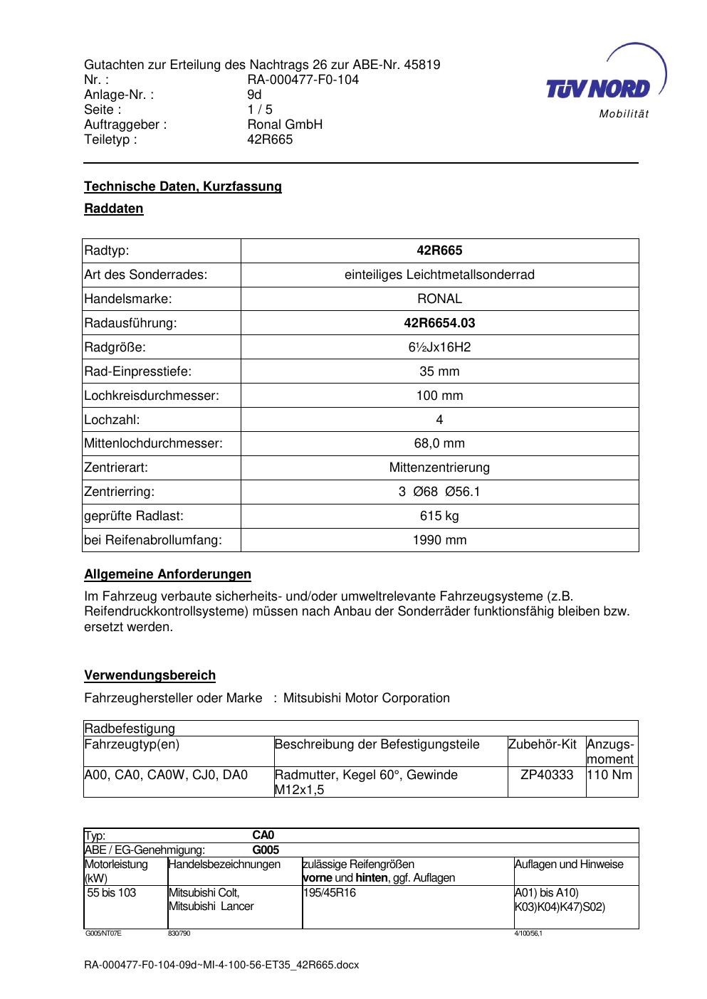 Dieses abe gehört zur Felge Ronal 42R665 in ET0 mit KBA 45819. Die Seite ist dafür gedacht, dass du schnell prüfen kannst, ob KBA, Design und Größe zu deiner Felge passen und danach direkt das richtige PDF lädst.