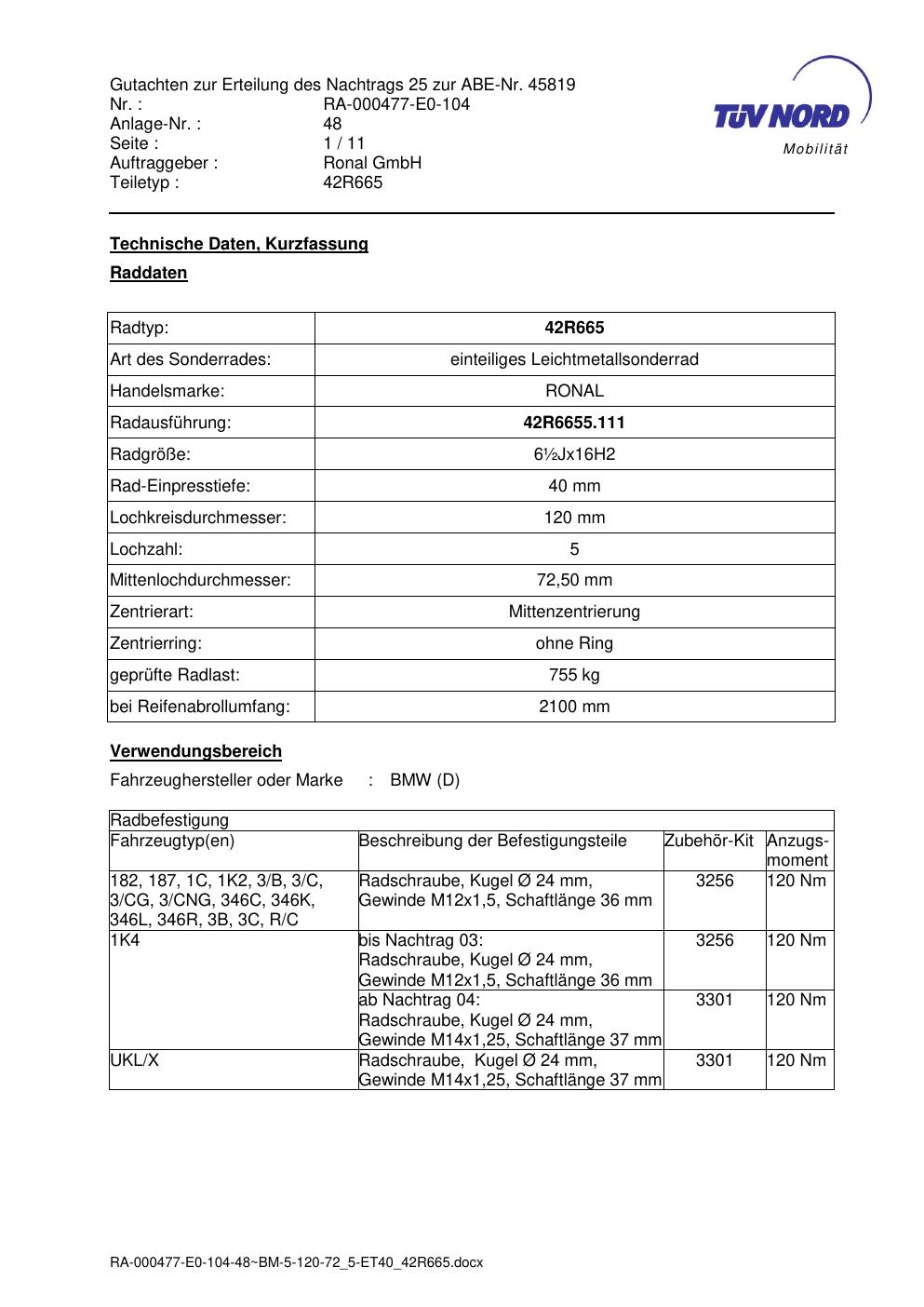 • Stimmt die KBA-Nummer auf der Felge mit diesem Dokument überein?