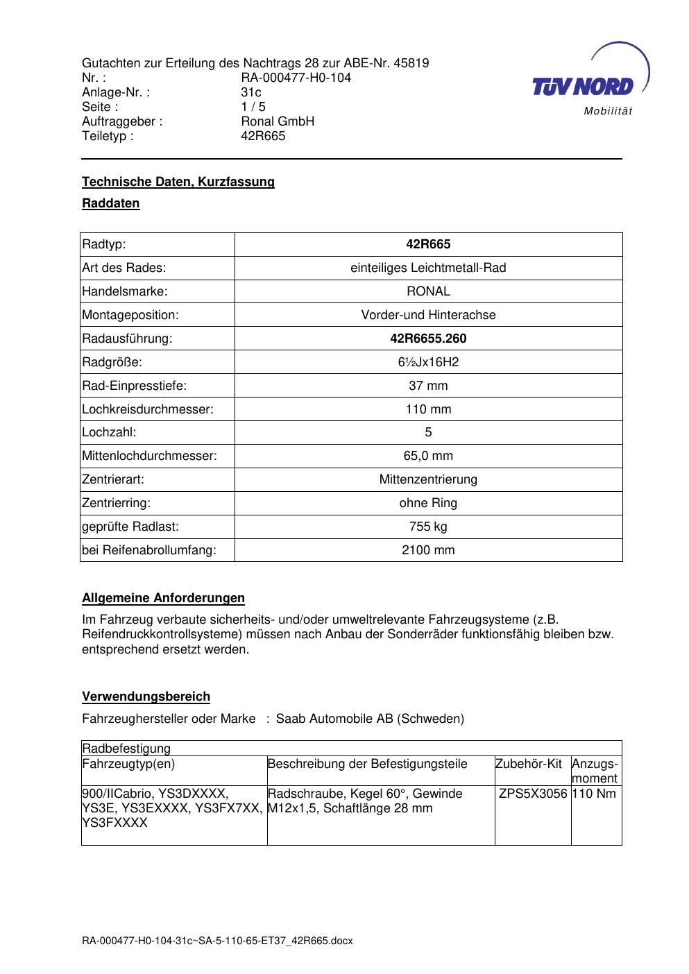 • Stimmt die KBA-Nummer auf der Felge mit diesem Dokument überein?