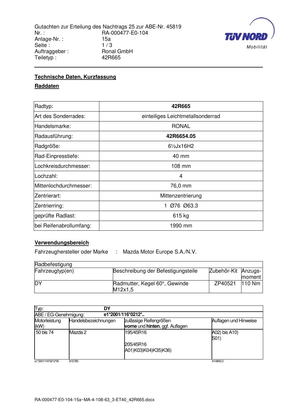 • Stimmt die KBA-Nummer auf der Felge mit diesem Dokument überein?