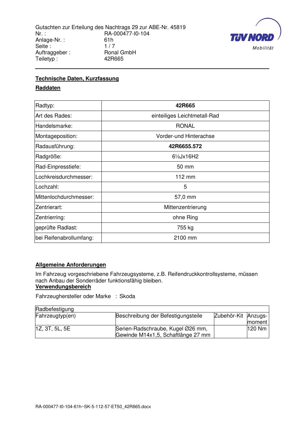 • Stimmt die KBA-Nummer auf der Felge mit diesem Dokument überein?
