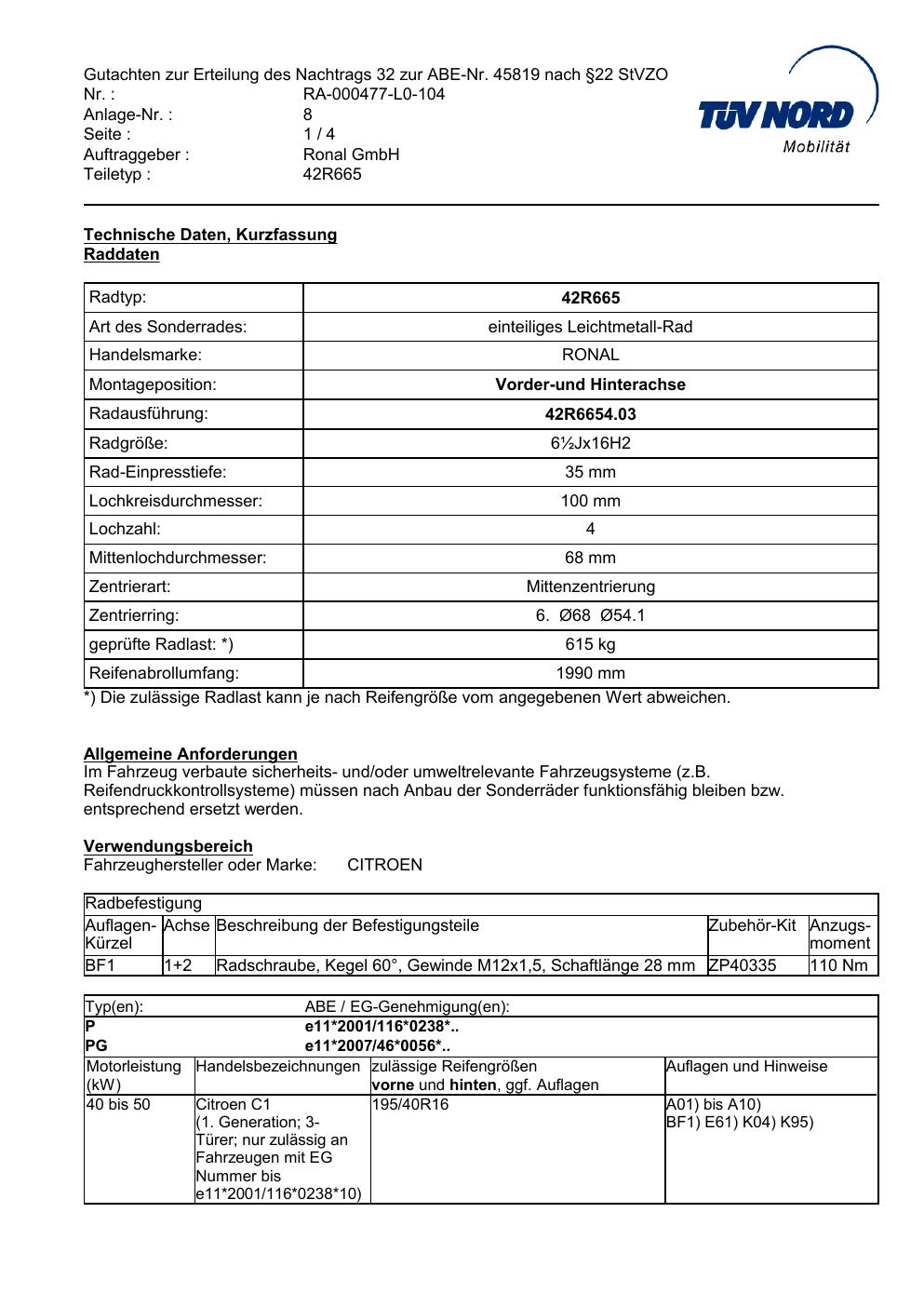 Dieses abe gehört zur Felge Ronal 42R665 in ET0 mit KBA 45819. Die Seite ist dafür gedacht, dass du schnell prüfen kannst, ob KBA, Design und Größe zu deiner Felge passen und danach direkt das richtige PDF lädst.