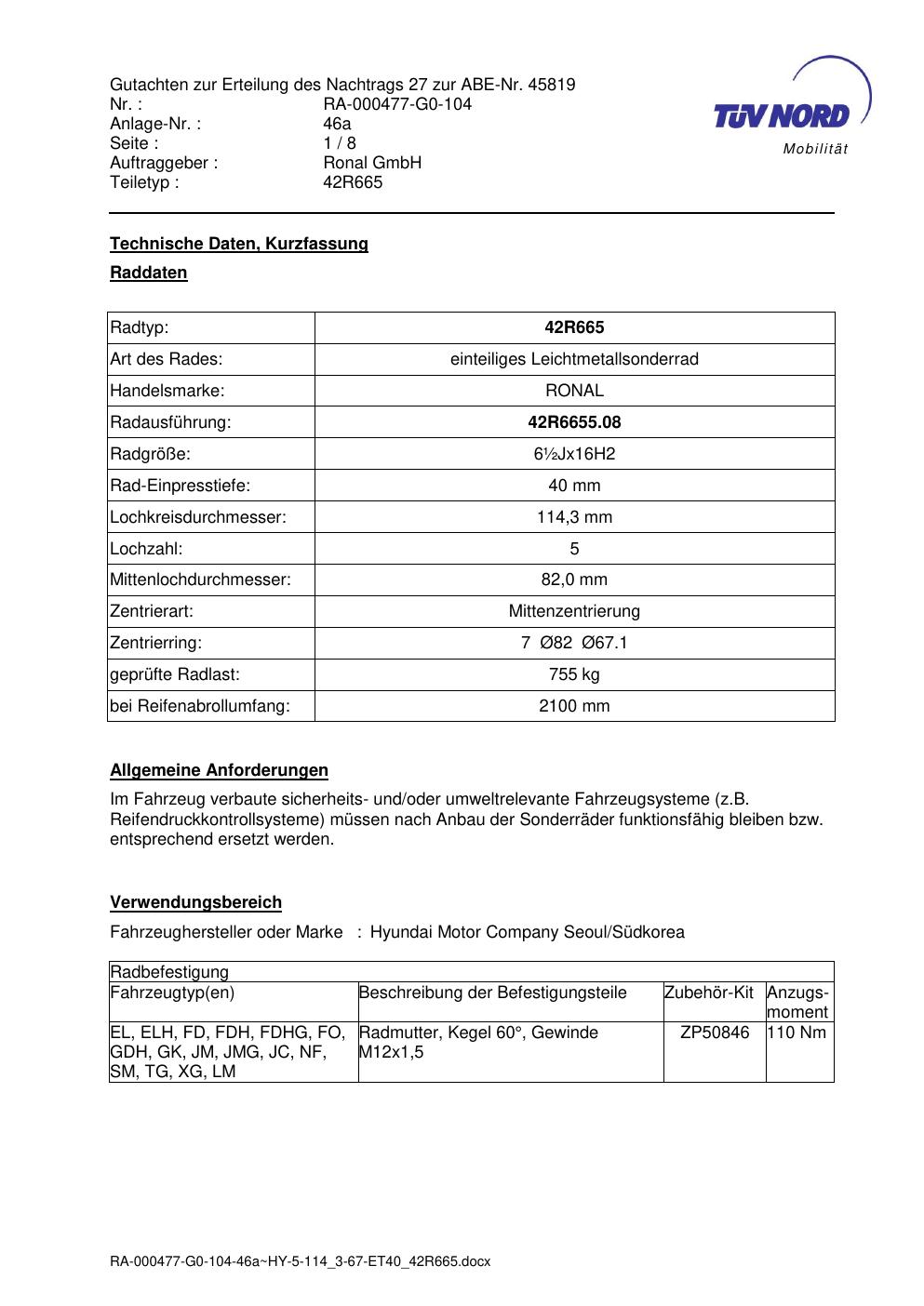 • Stimmt die KBA-Nummer auf der Felge mit diesem Dokument überein?