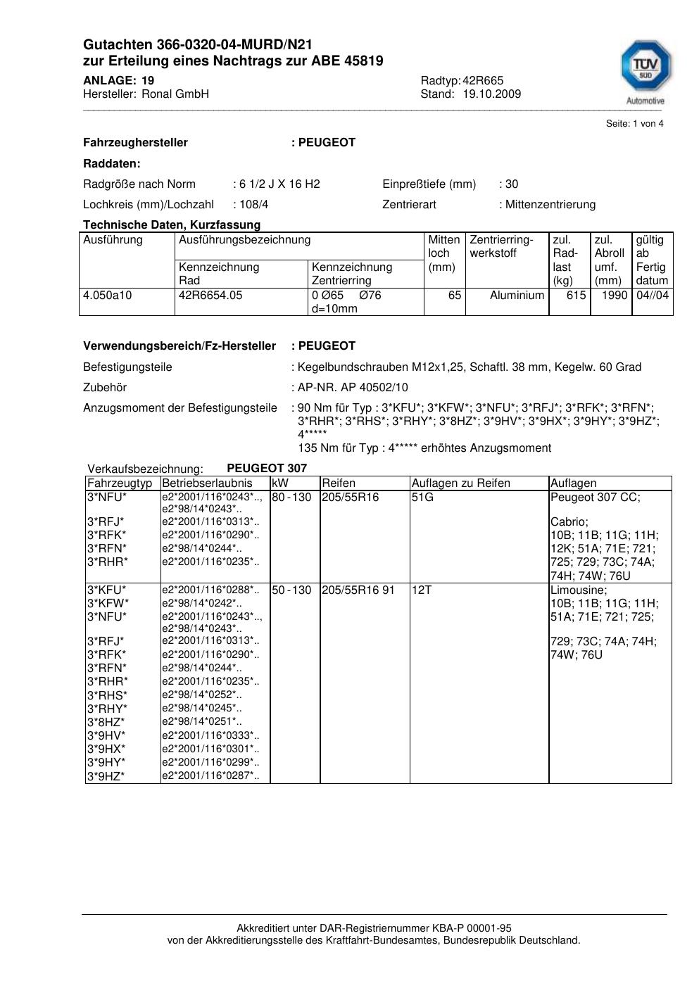 - Stimmt die KBA-Nummer auf der Felge mit diesem Dokument überein?