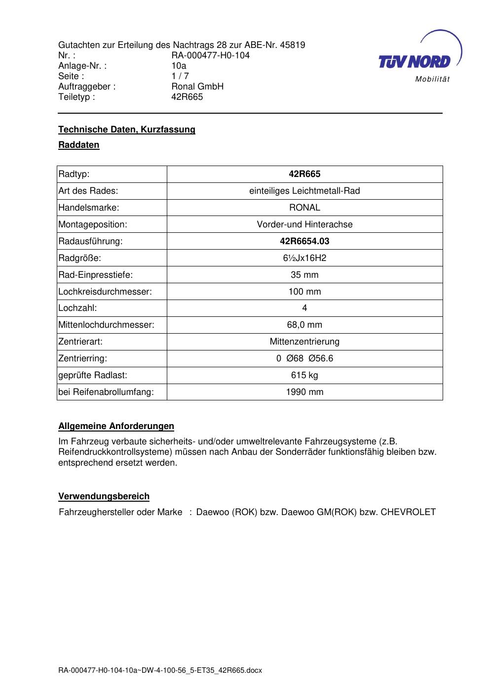 • Stimmt die KBA-Nummer auf der Felge mit diesem Dokument überein?
