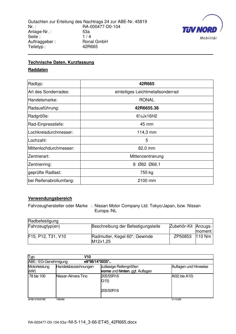 • Stimmt die KBA-Nummer auf der Felge mit diesem Dokument überein?