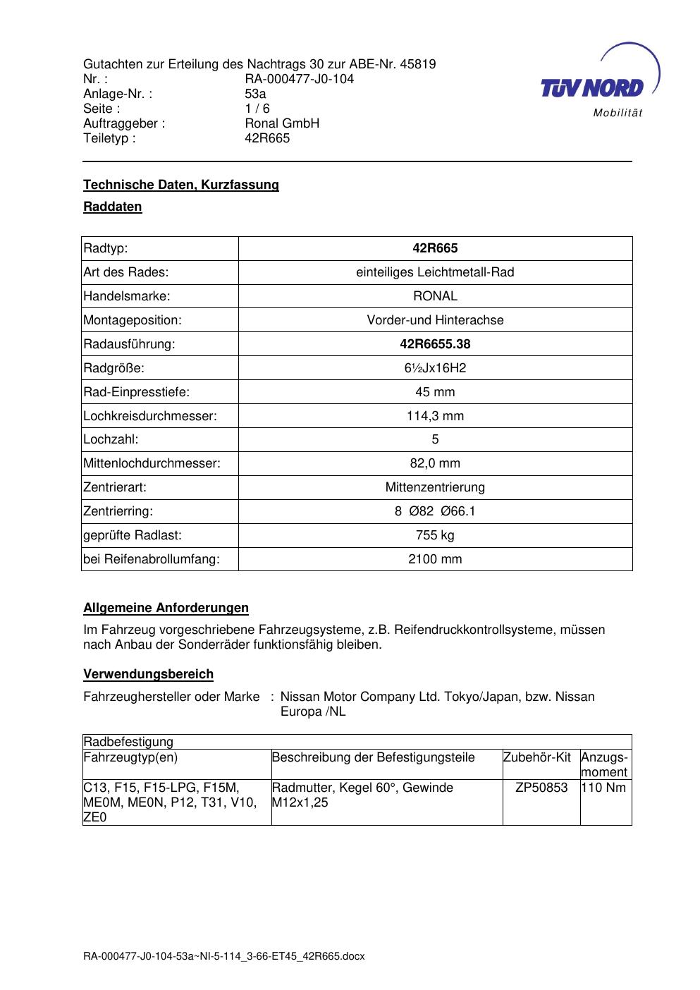 • Stimmt die KBA-Nummer auf der Felge mit diesem Dokument überein?