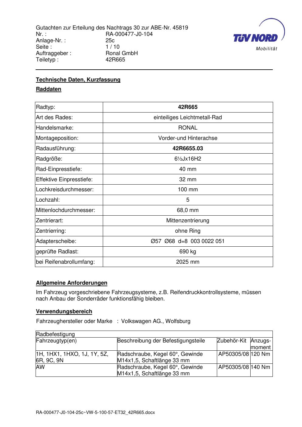 • Stimmt die KBA-Nummer auf der Felge mit diesem Dokument überein?