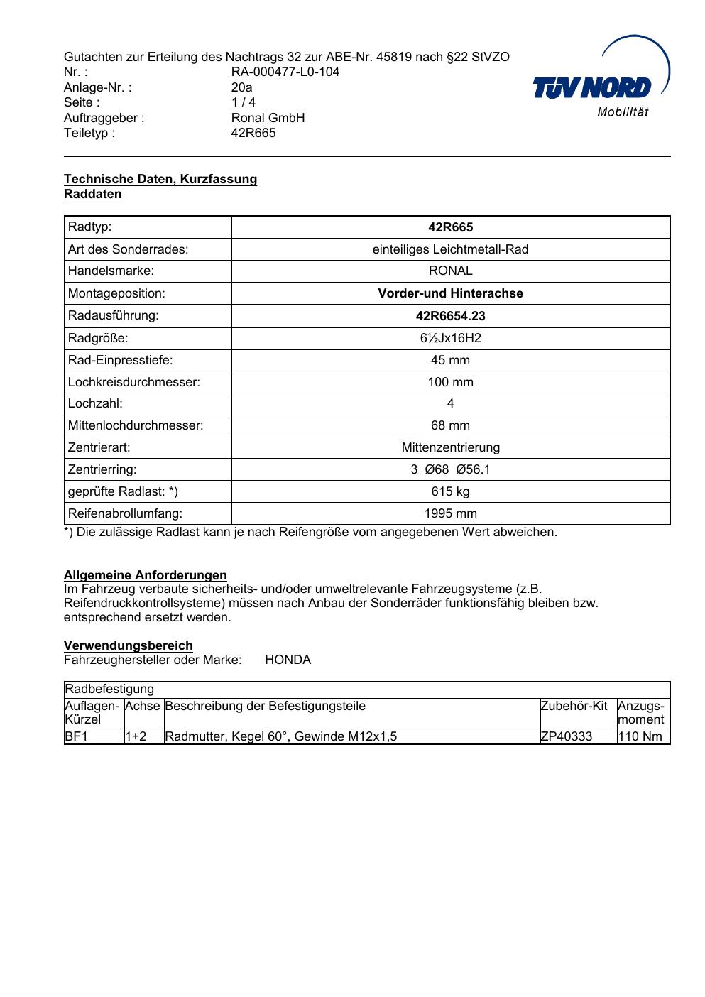 • Stimmt die KBA-Nummer auf der Felge mit diesem Dokument überein?