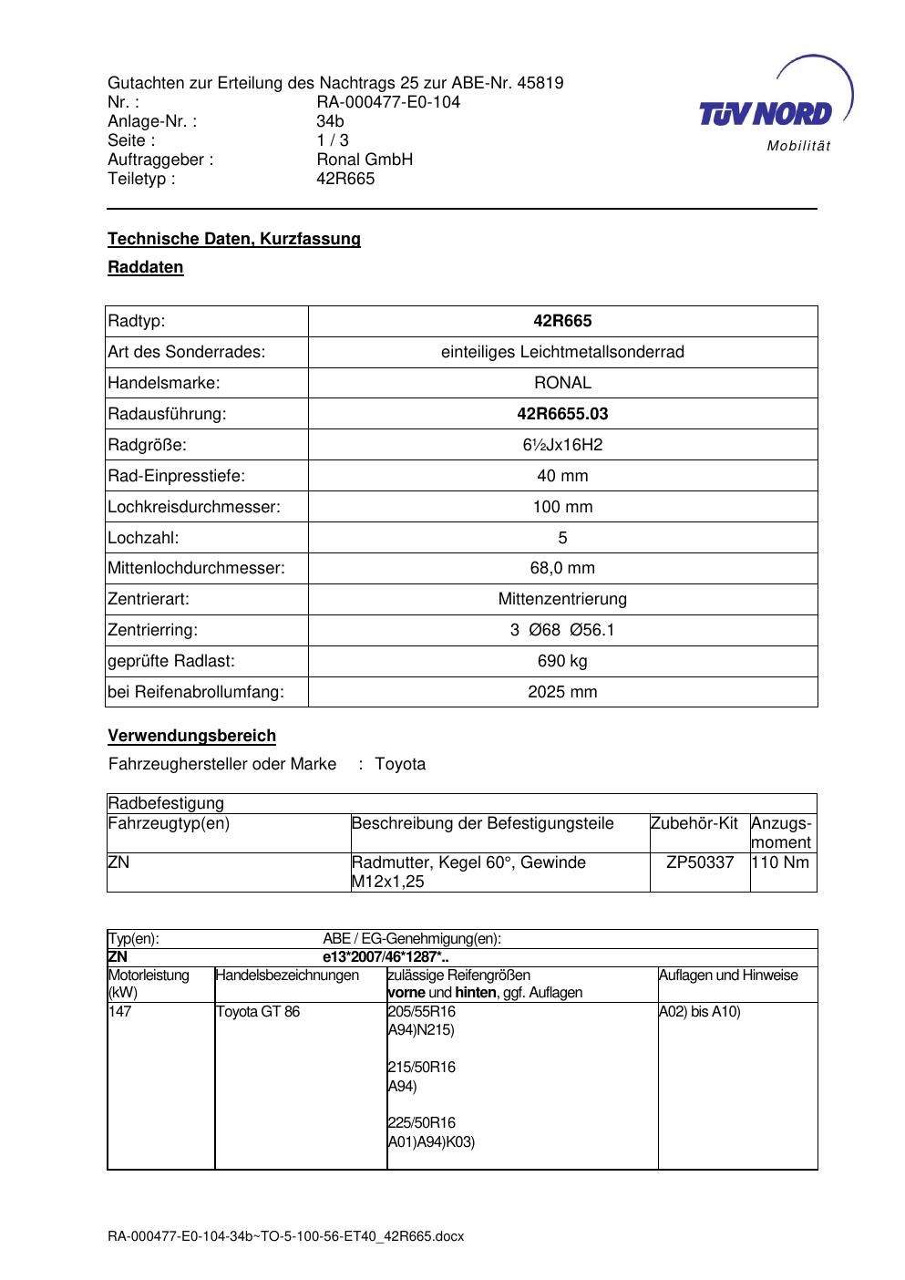 • Stimmt die KBA-Nummer auf der Felge mit diesem Dokument überein?