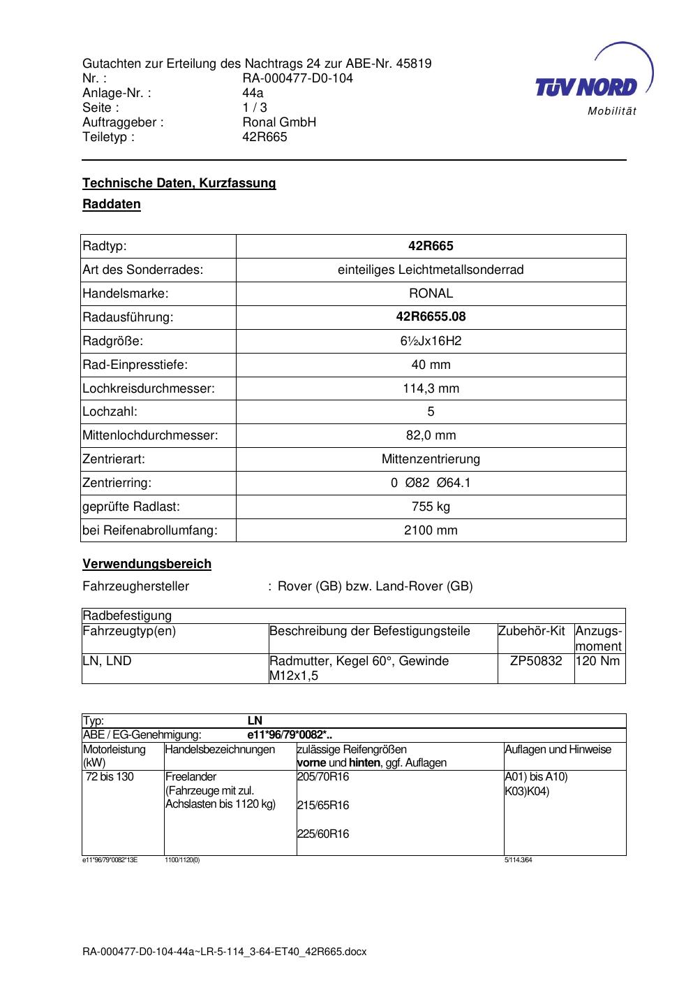 • Stimmt die KBA-Nummer auf der Felge mit diesem Dokument überein?