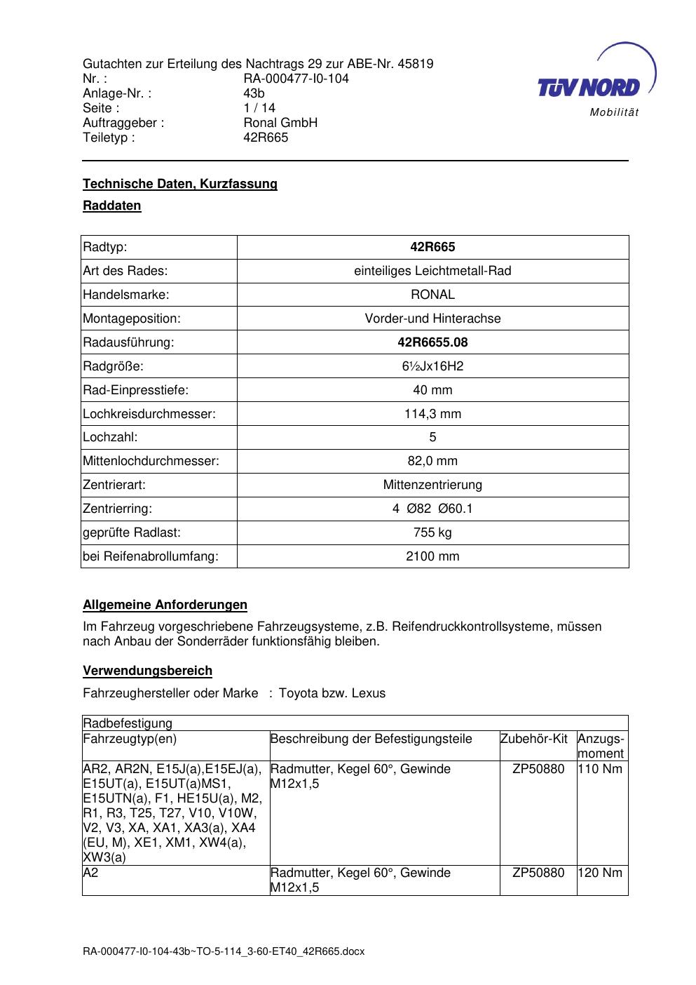 • Stimmt die KBA-Nummer auf der Felge mit diesem Dokument überein?