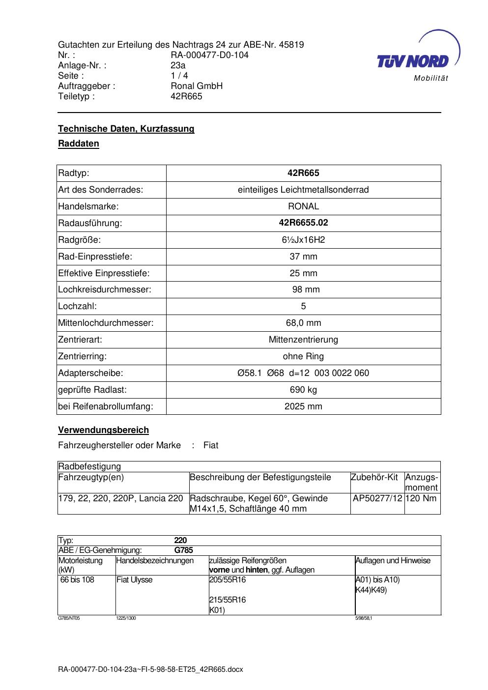 • Stimmt die KBA-Nummer auf der Felge mit diesem Dokument überein?