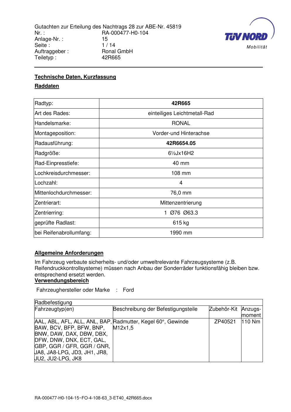 • Stimmt die KBA-Nummer auf der Felge mit diesem Dokument überein?