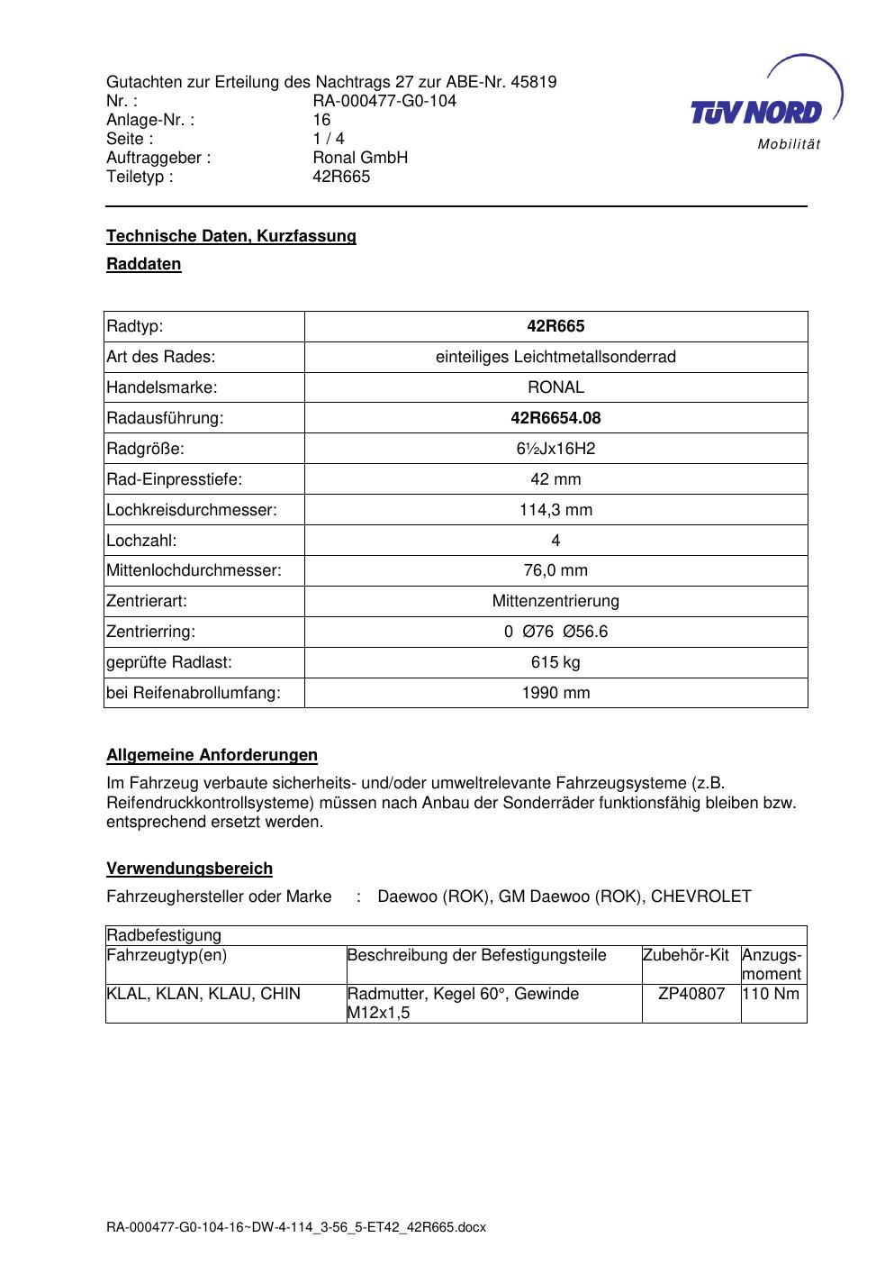 • Stimmt die KBA-Nummer auf der Felge mit diesem Dokument überein?