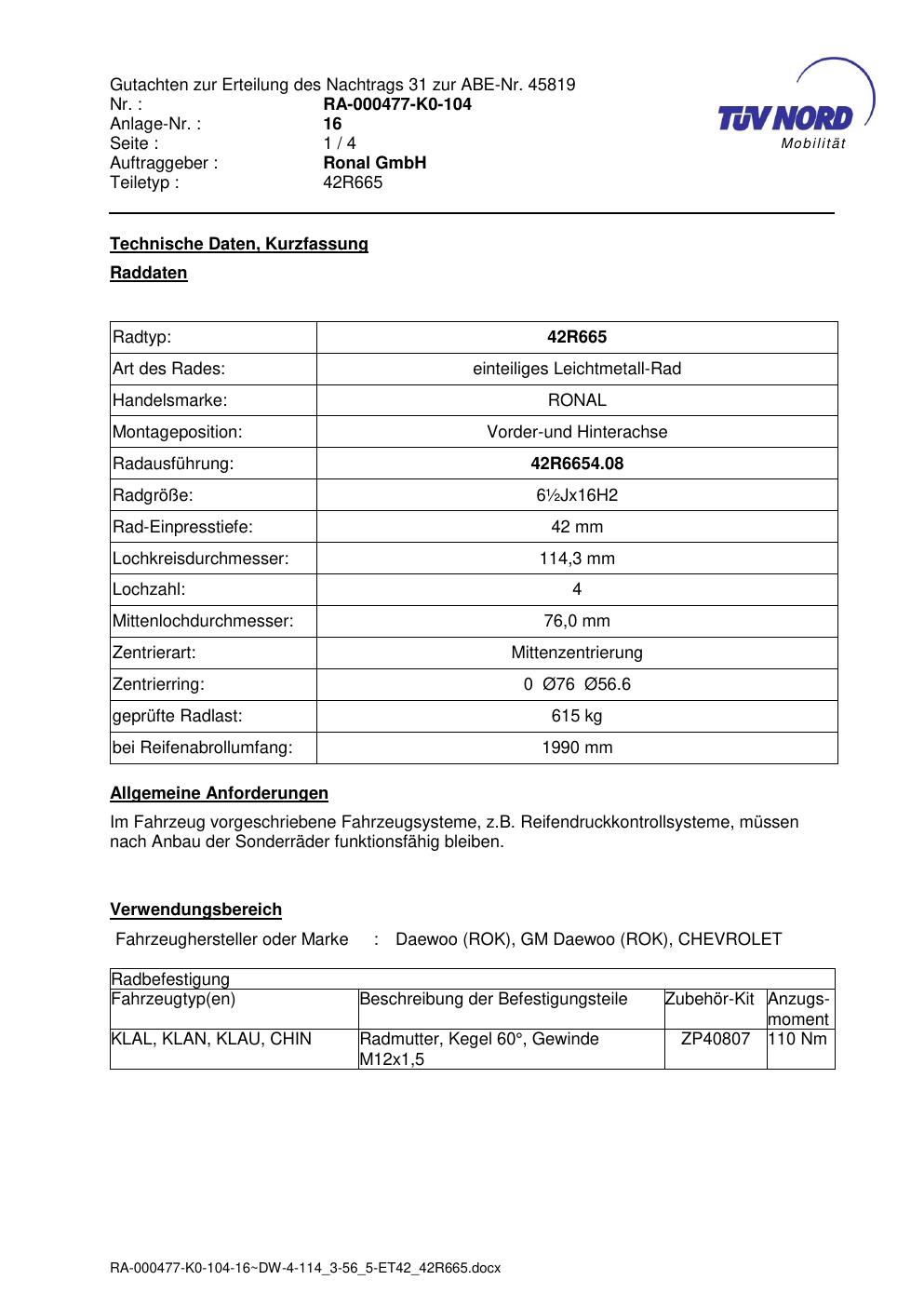 • Stimmt die KBA-Nummer auf der Felge mit diesem Dokument überein?