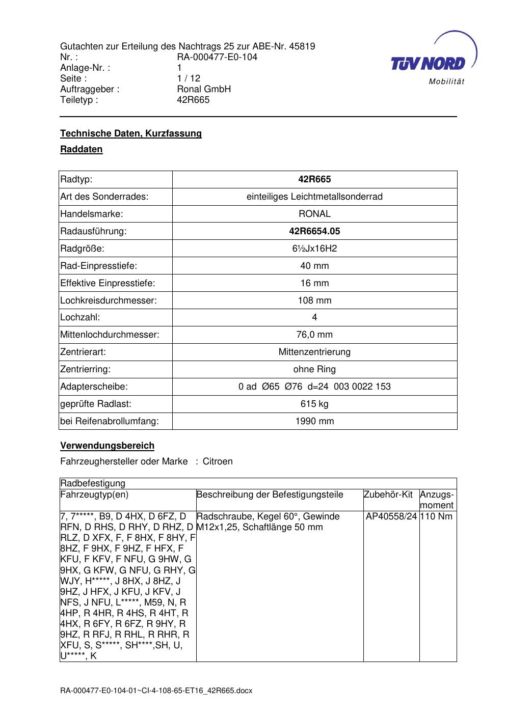 • Stimmt die KBA-Nummer auf der Felge mit diesem Dokument überein?