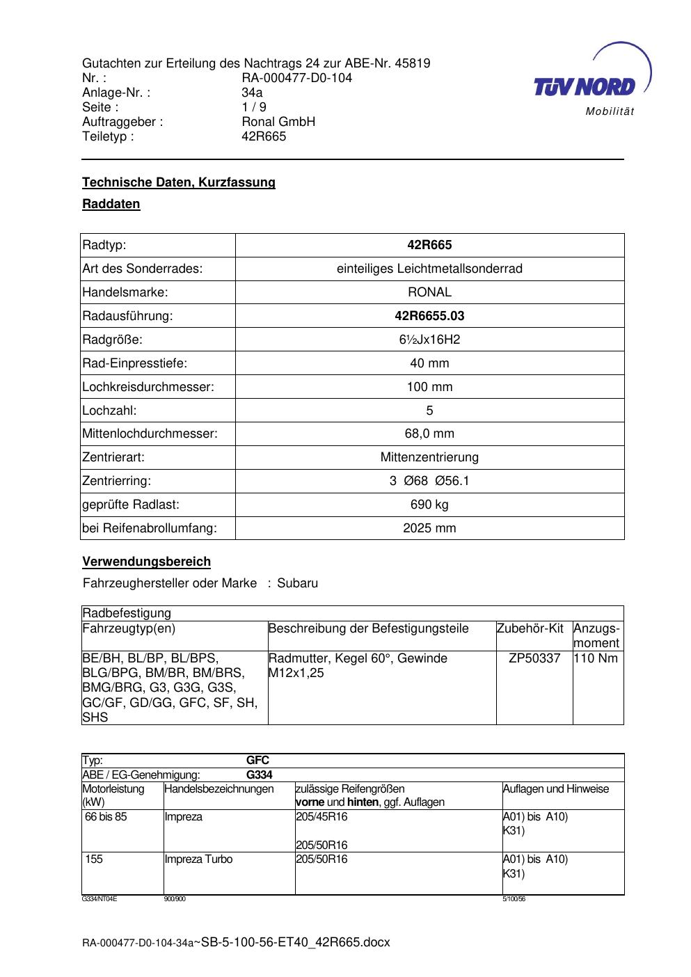 • Stimmt die KBA-Nummer auf der Felge mit diesem Dokument überein?