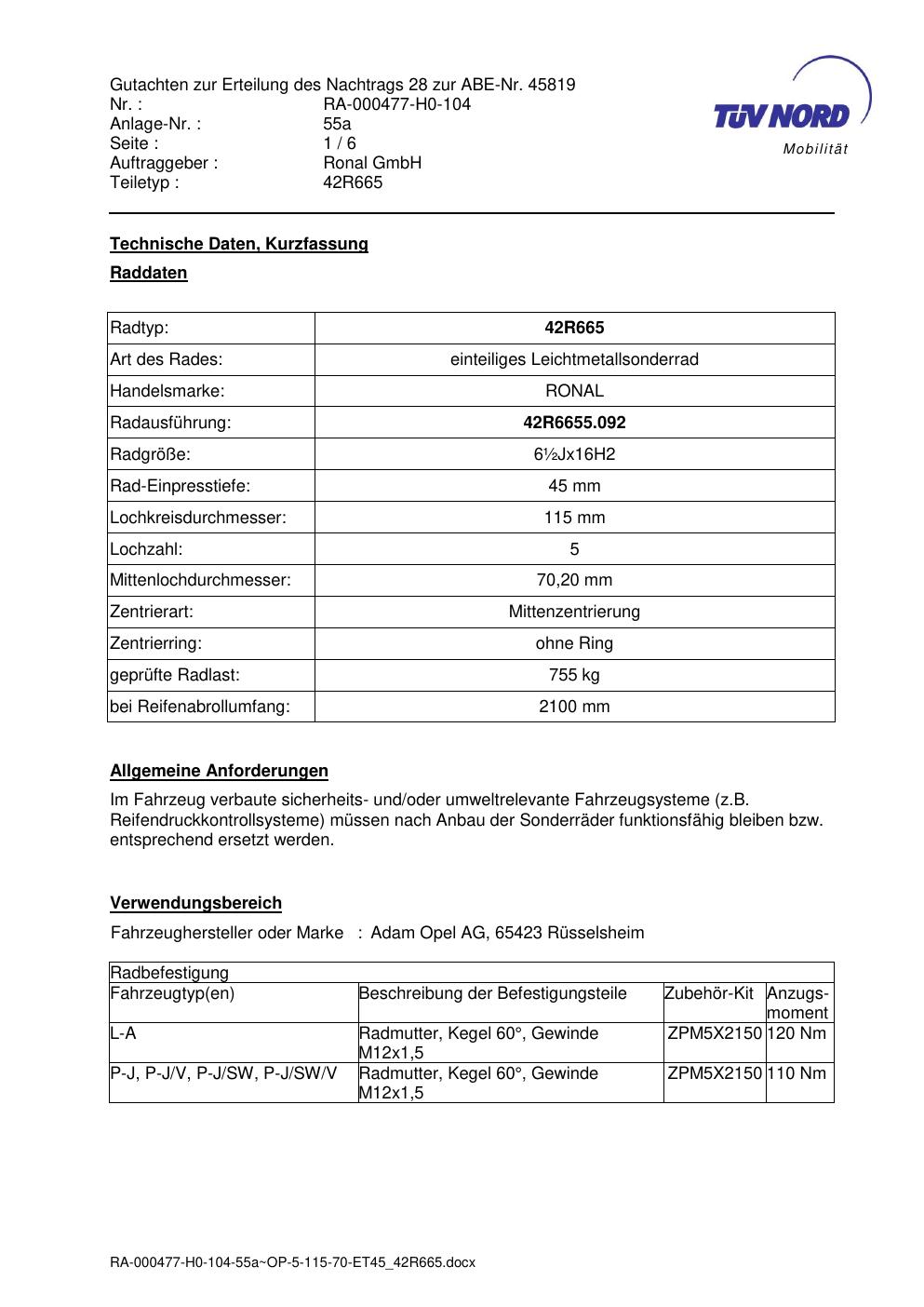 • Stimmt die KBA-Nummer auf der Felge mit diesem Dokument überein?