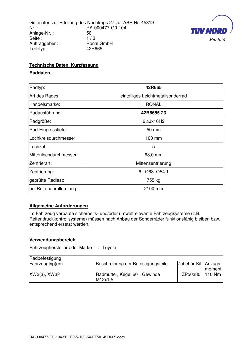 • Stimmt die KBA-Nummer auf der Felge mit diesem Dokument überein?