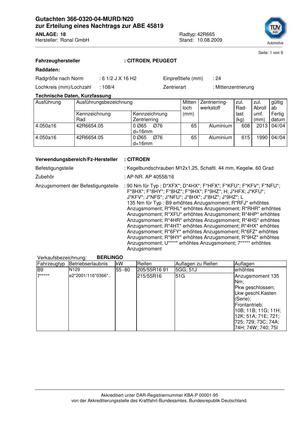• Stimmt die KBA-Nummer auf der Felge mit diesem Dokument überein?