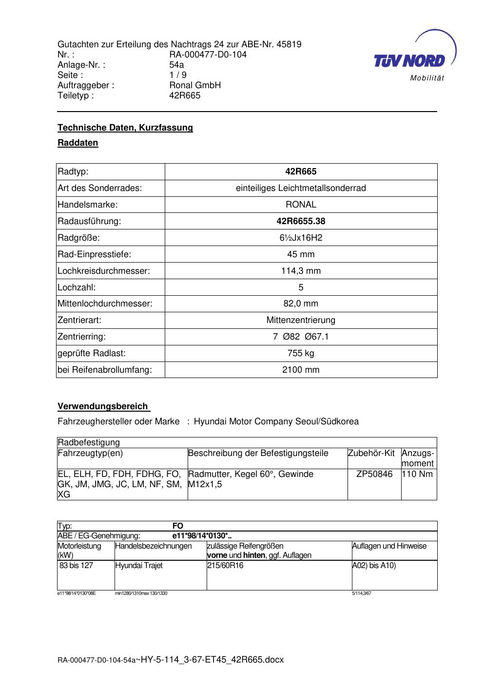 • Stimmt die KBA-Nummer auf der Felge mit diesem Dokument überein?