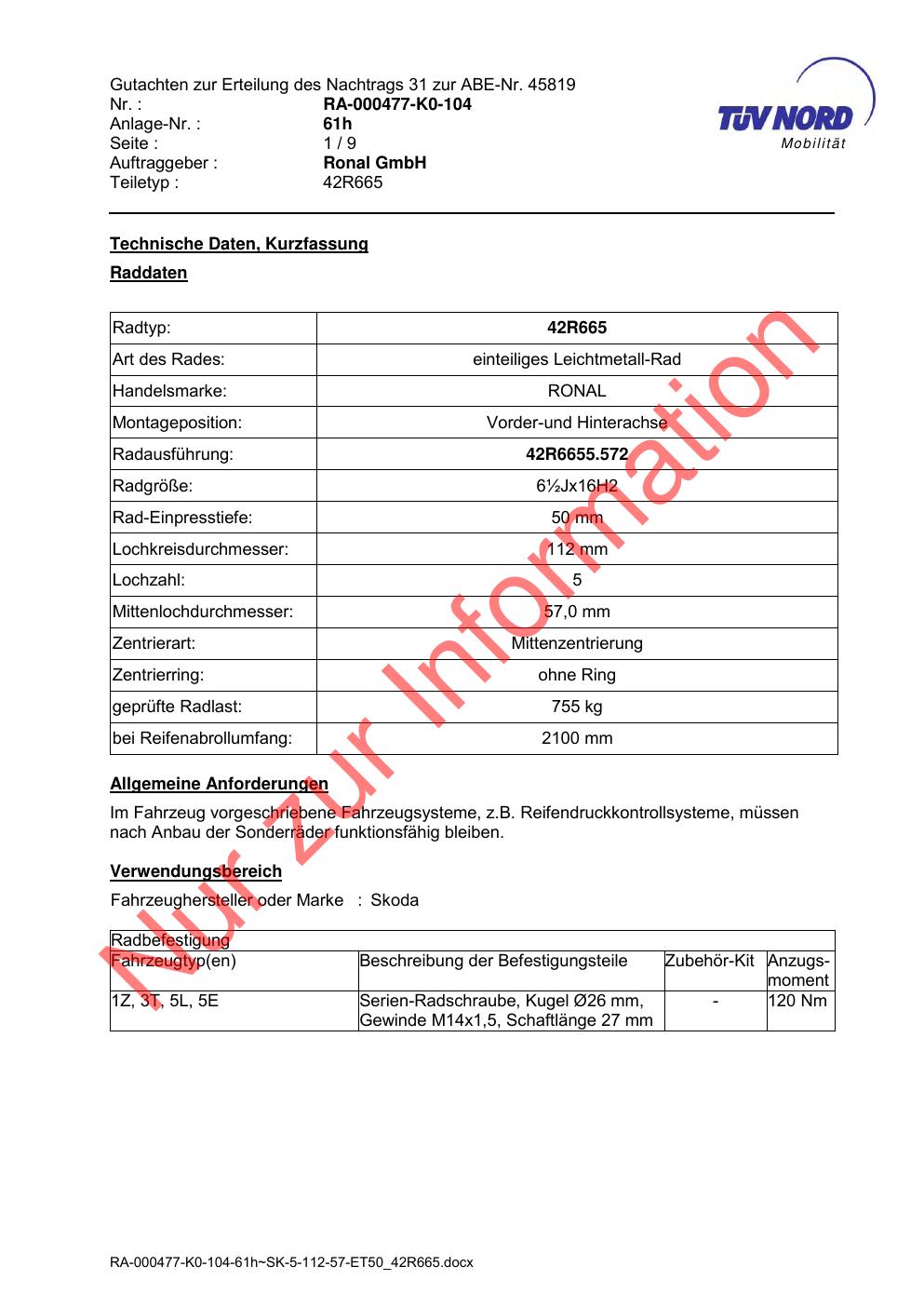 • Stimmt die KBA-Nummer auf der Felge mit diesem Dokument überein?