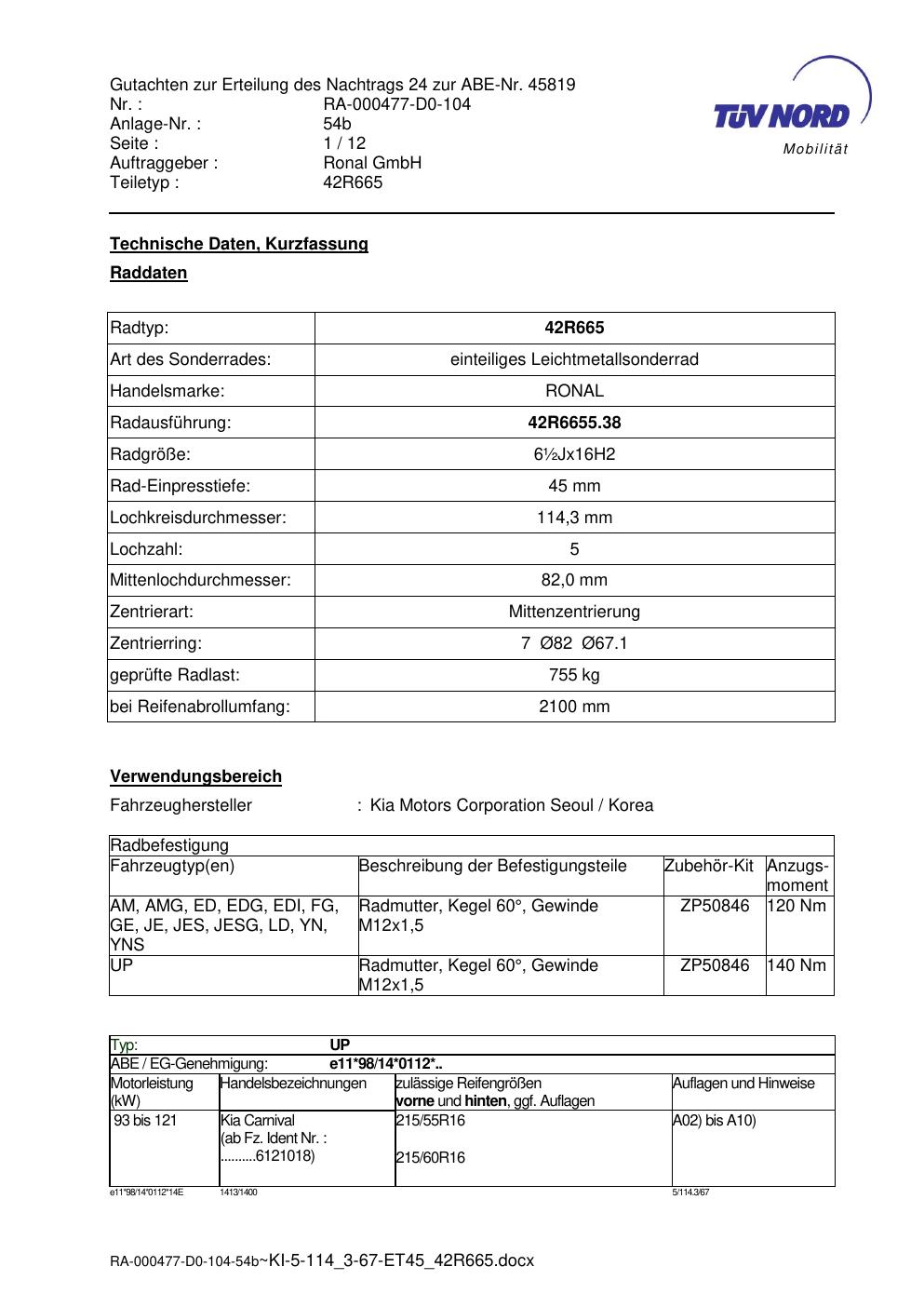 • Stimmt die KBA-Nummer auf der Felge mit diesem Dokument überein?