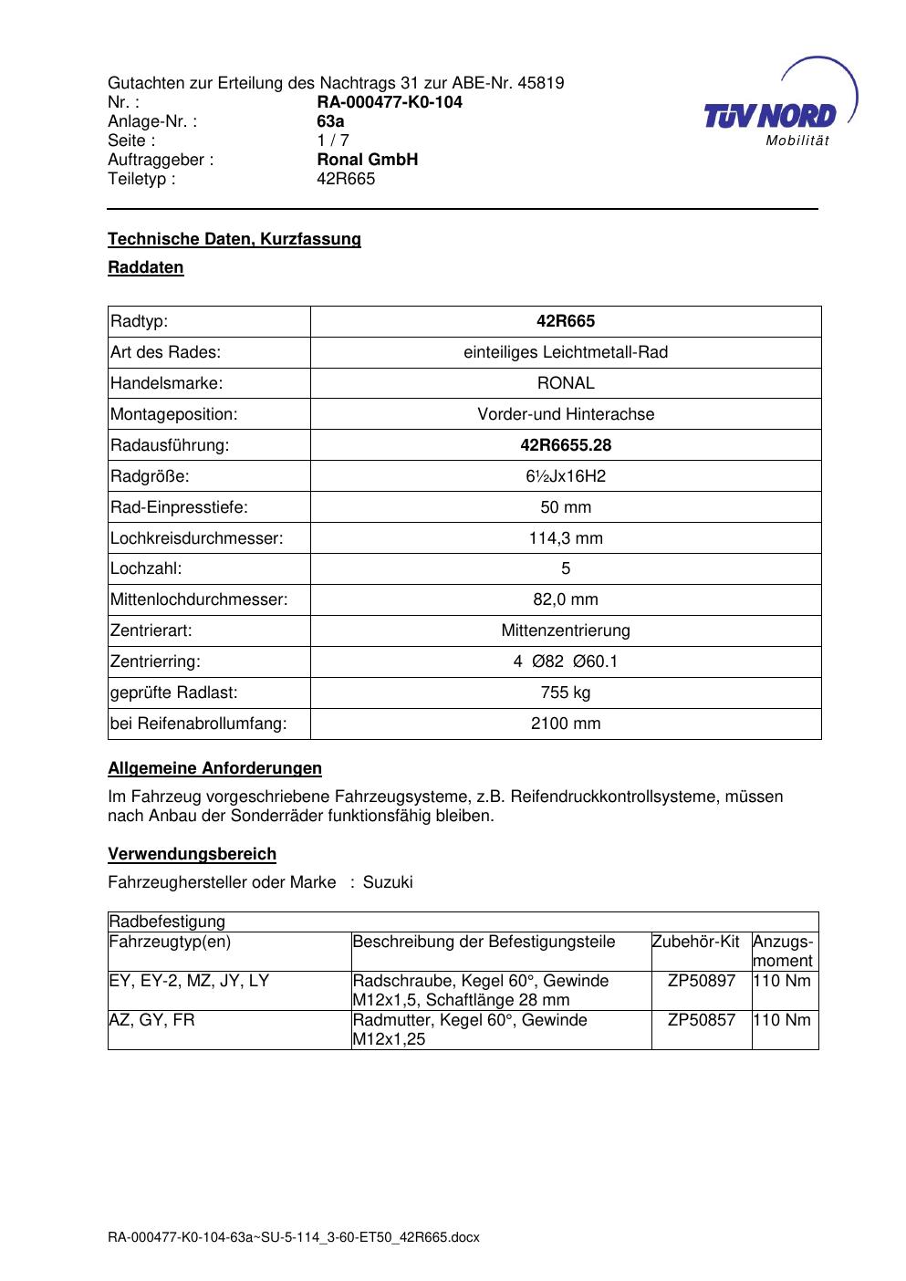 • Stimmt die KBA-Nummer auf der Felge mit diesem Dokument überein?
