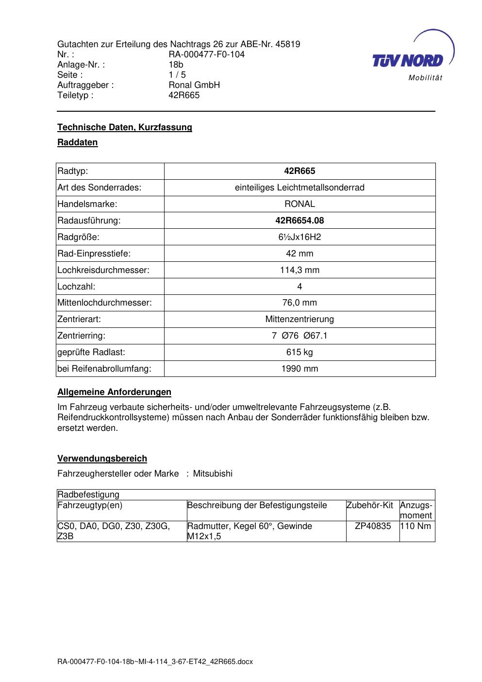 Dieses abe gehört zur Felge Ronal 42R665 in ET0 mit KBA 45819. Die Seite ist dafür gedacht, dass du schnell prüfen kannst, ob KBA, Design und Größe zu deiner Felge passen und danach direkt das richtige PDF lädst.