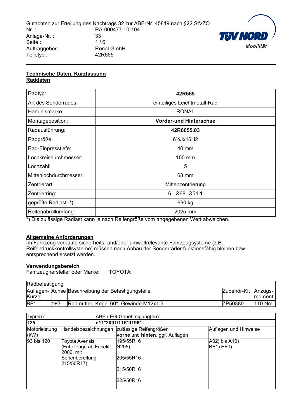 • Stimmt die KBA-Nummer auf der Felge mit diesem Dokument überein?