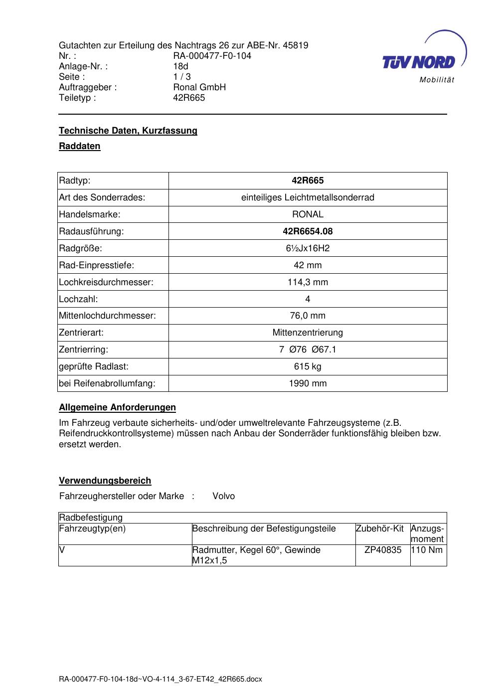 • Stimmt die KBA-Nummer auf der Felge mit diesem Dokument überein?