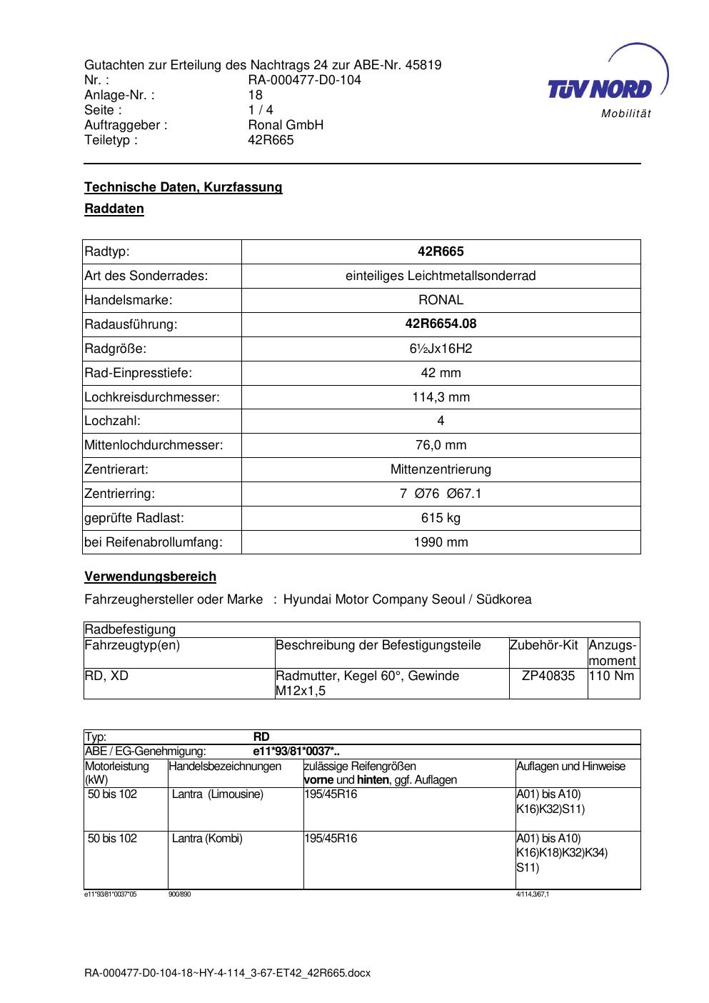• Stimmt die KBA-Nummer auf der Felge mit diesem Dokument überein?