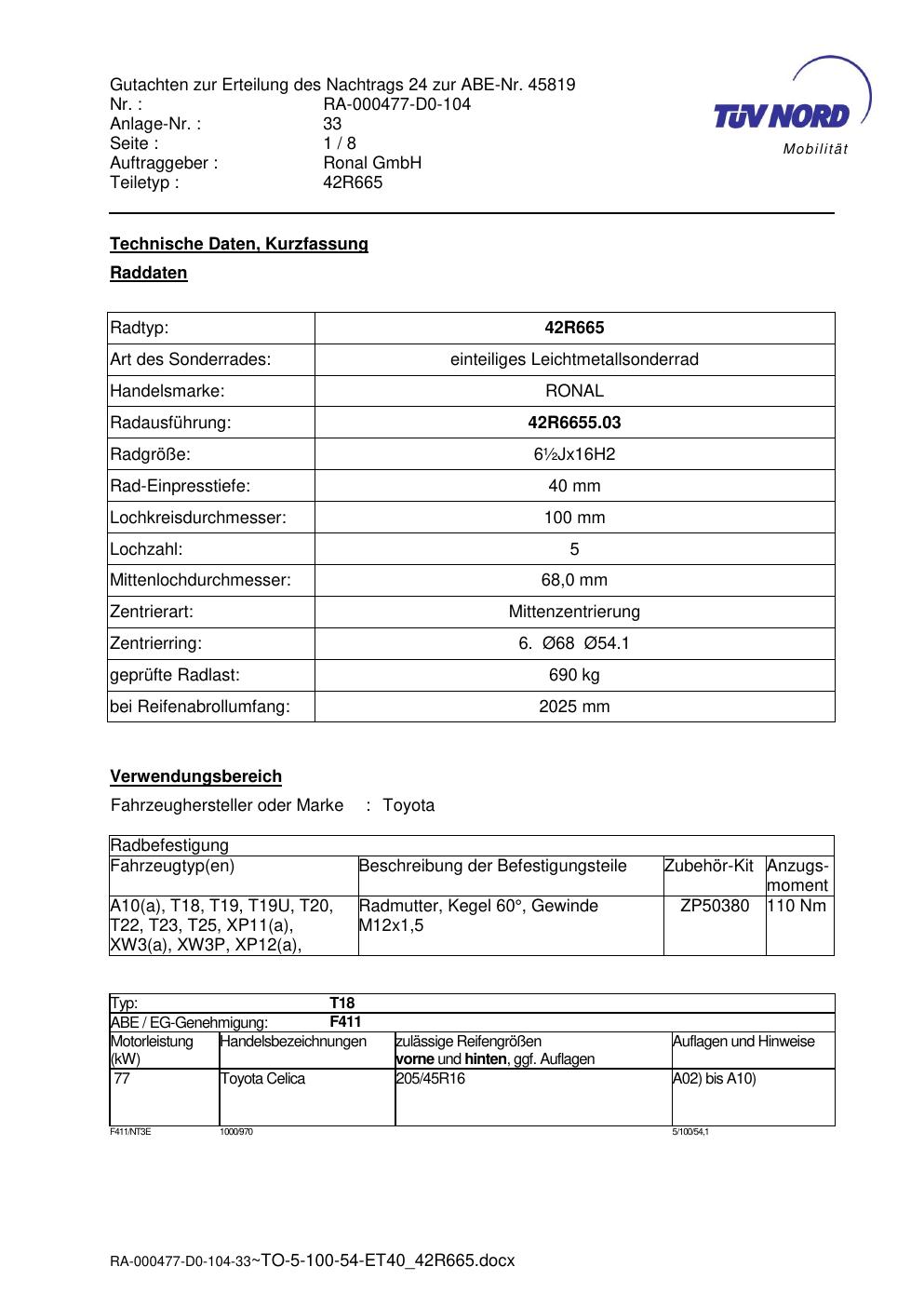 • Stimmt die KBA-Nummer auf der Felge mit diesem Dokument überein?