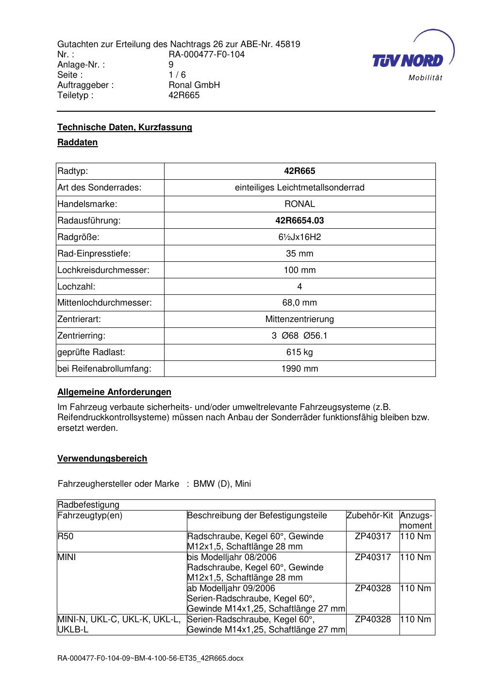 • Stimmt die KBA-Nummer auf der Felge mit diesem Dokument überein?