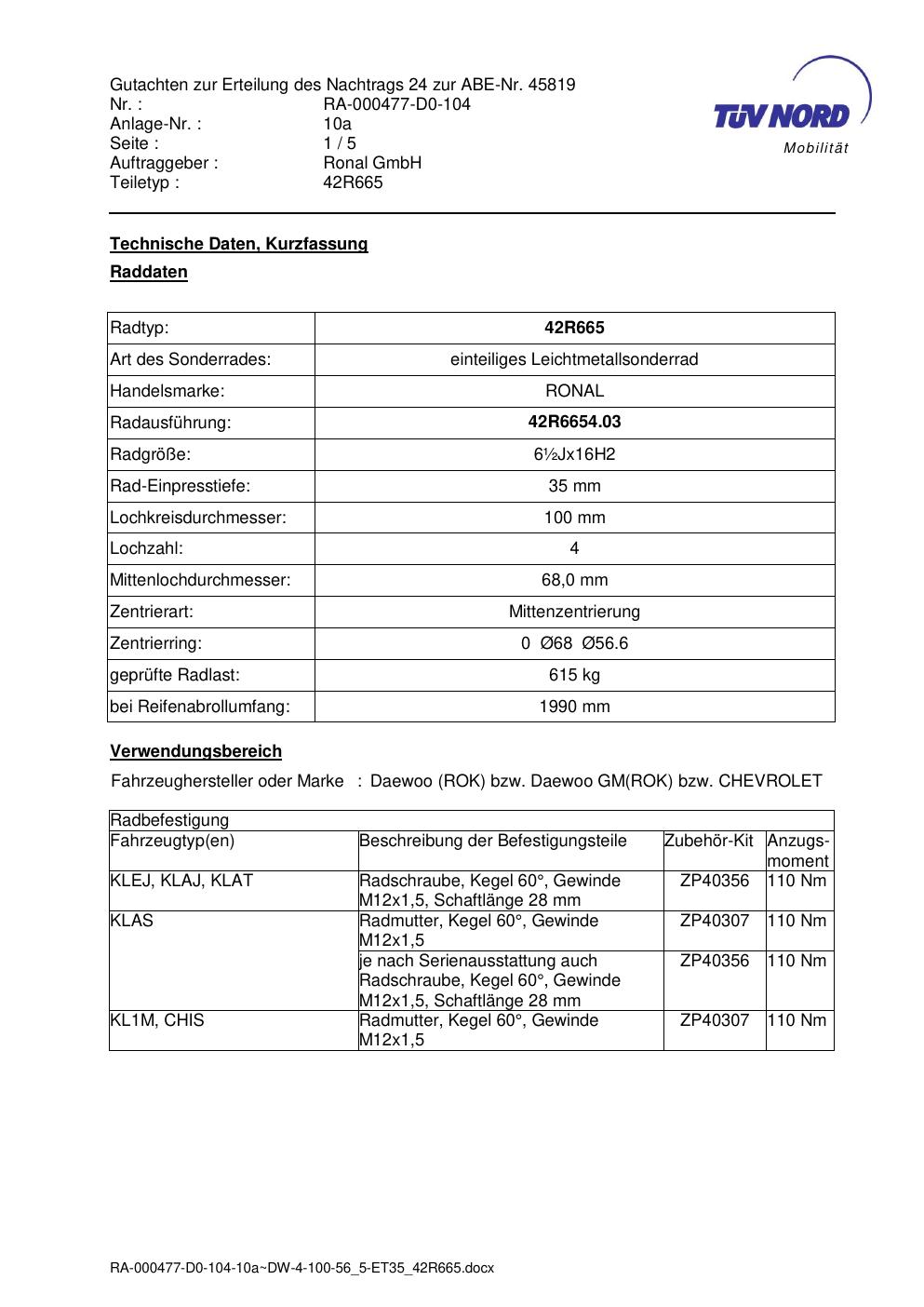 Dieses abe der Marke Ronal stammt vom jeweiligen Hersteller, Importeur oder einer Prüforganisation.