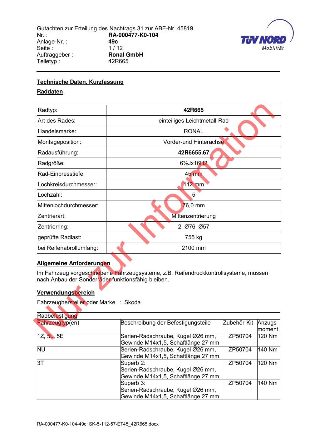 • Stimmt die KBA-Nummer auf der Felge mit diesem Dokument überein?