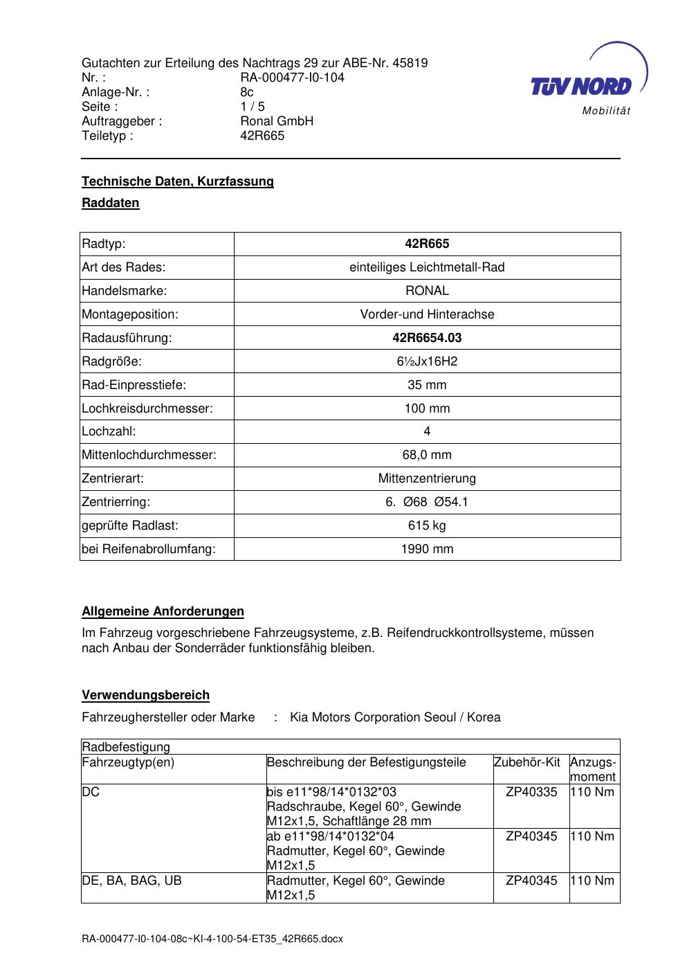 • Stimmt die KBA-Nummer auf der Felge mit diesem Dokument überein?